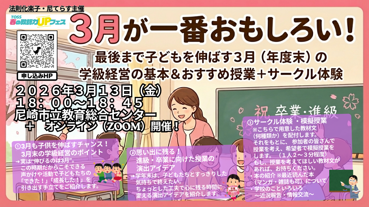 3月が一番おもしろい!最後まで子どもを伸ばす3月(年度末)の学級経営の基本&おすすめ授業+サークル体験