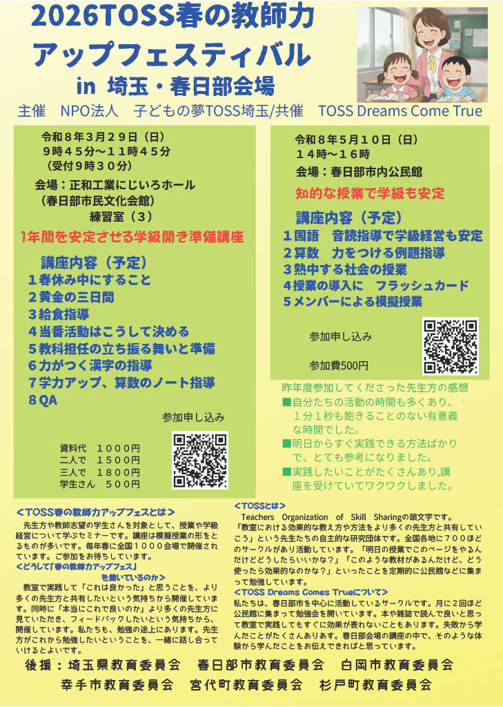 明日の授業が楽しみになる!! TOSS進舞2 春の教師力UPフェス(第1回)